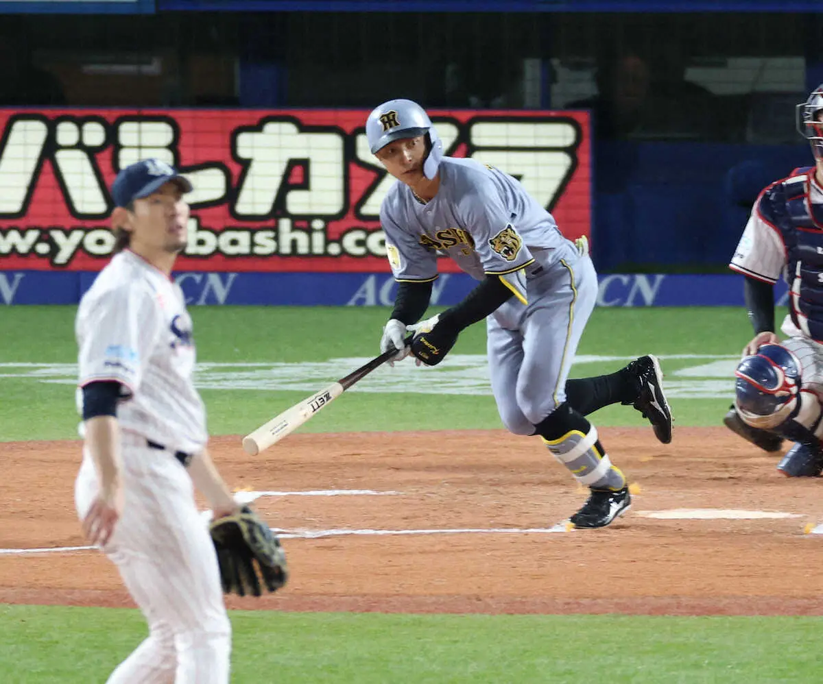 2点リードの6回1死二塁では高梨のフォークをコンパクトなスイングで捉え、適時二塁打で今季初打点をマークした。「小幡とトライさん(伏見)がつないでくれたんで。いいところで打てて良かったです」とクールに振り返った虎のいぶし銀も、しっかり輝いた夜になった。