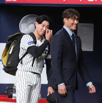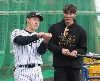 阪神・工藤と糸井SAが試合前に談笑 期待の豪腕×超人「筋肉コラボ」が実現