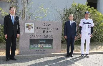 坊っちゃんスタジアムでヤクルト日本一石碑除幕式 衣笠球団社長「また建てる」