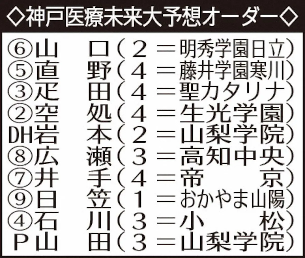 神戸医療未来大予想オーダー Photo by スポニチ 【近畿学生野球 8月30日開幕】神戸医療未来大 初優勝へ命運を握る投打の柱 ギャラリーで見る この記事のフォト 関西大学野球リーグの写真一覧 もっと見る