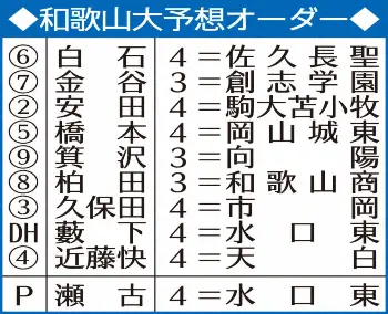 【近畿学生野球4月5日開幕】和歌山大 覇権奪回へ主力がフル回転