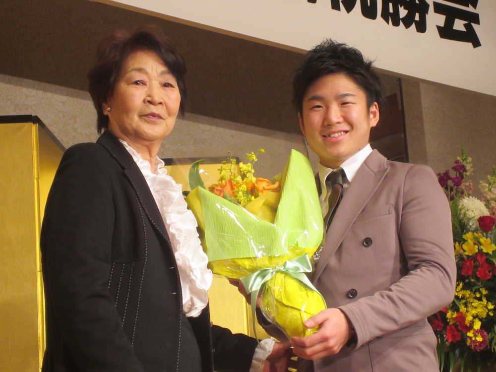 祝勝会では、後援会長があいさつで試合中継に触れ「ほんの数秒のダイジェストだった」と苦笑する場面もあった。それを受けて、拳四朗も「今年はテレビに出て知名度が上がるように頑張りたい」と、集まった約250人の出席者に誓っていた。