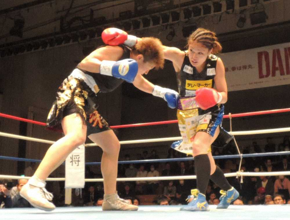 <日本女子バンタム級タイトルマッチ>判定で2度目の防衛に成功した吉田実代(右)