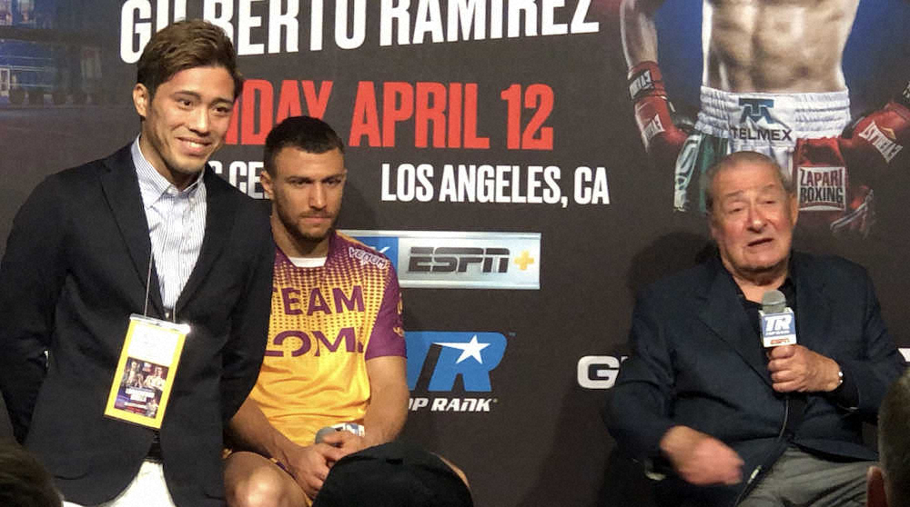 伊藤は自身のインスタグラムに同社のボブ・アラム氏、防衛戦にKO勝利したばかりのWBA&WBO世界ライト級王者ワシル・ロマチェンコ(ウクライナ)との写真を投稿。「すごく良い条件で契約させてもらい、期待してもらっていると感じます」とコメントした。