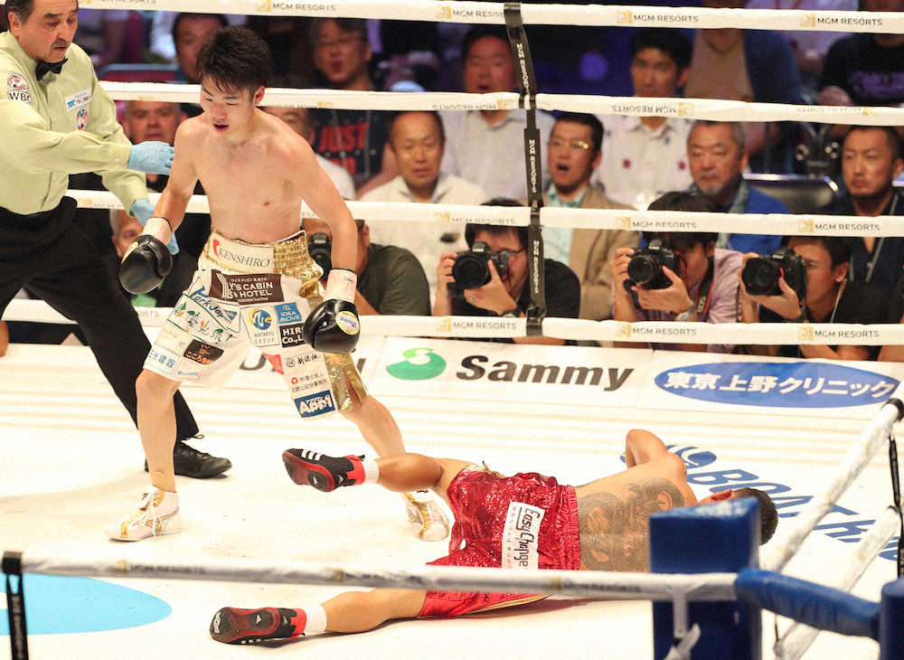 WBC世界ライトフライ級タイトルマッチは王者・拳四朗(27=BMB)が4回1分0秒、TKOで同級1位の挑戦者ジョナサン・タコニン(32=フィリピン)を下し、6度目の防衛に成功した。試合後は名前の由来となった漫画「北斗の拳」のロゴがあしらわれたリングに寝そべり強さをアピール。「強い選手とどんどんやってベルトを集め格好いいと言われたい。皆さん、どんどん挑戦してください」と言い放った。
