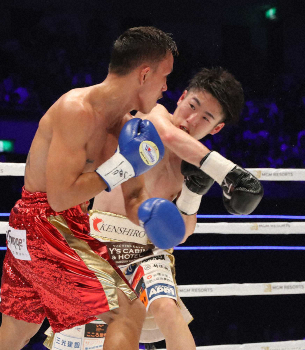 ▽拳四朗―タコニンVTR 拳四朗が4回にカウンターの右強打で顎を鮮やかに打ち抜いて試合を決めた。ステップや打撃のスピードを生かした。左ジャブとノーモーションで繰り出す右を的確に当ててペースをつかんだ。挑戦者の回転力に押されて守勢となった場面も右アッパーなどで冷静に対処した。タコニンは防御が甘くなった。