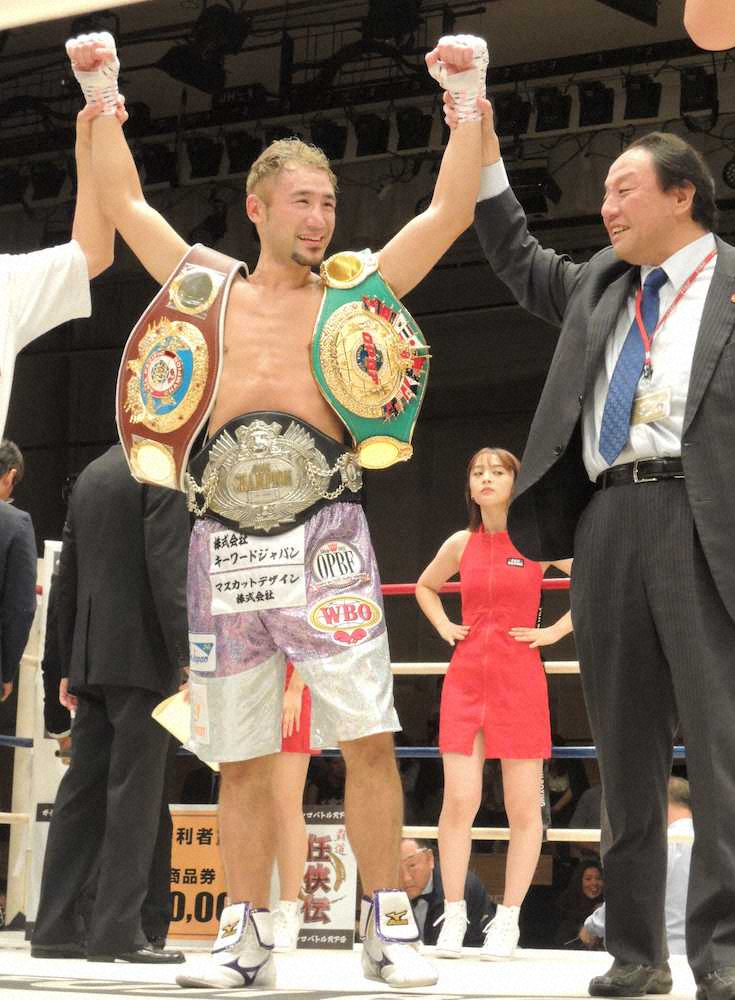 右ボディーを連打するデラ・トーレを返しの左フック一発で沈め「打ち終わりが雑だと気づいたので、そこを狙った」と胸を張った。米合宿の成果を発揮しての快勝。デビューから11連勝で日本に加えて東洋太平洋、WBOアジアと3本のベルトを手に入れた28歳は「少しずつ世界に名前を売りたい、海外でも試合がしたい」と力強かった。