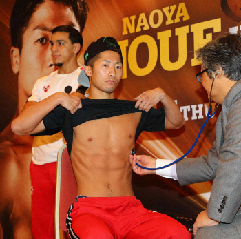 <WBSSバンタム級決勝戦>ドネアが背後でピースするなか、予備検診を受ける井上尚弥(撮影・会津 智海) Photo by スポニチ 尚弥 最高最速仕上げ!本番4日前にリミット体重クリア「不安材料は何一つ… ギャラリーで見る この記事のフォト 2019年11月05日の画像一覧 もっと見る 2019年11月05日の画像をもっと見る