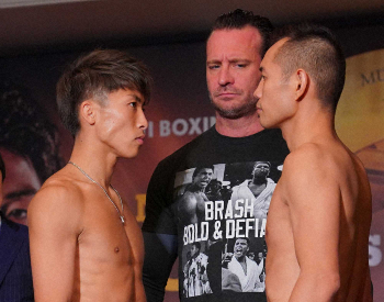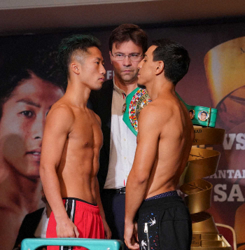 <WBSS井上尚弥・ドネア計量>計量をパスし、向かい合う井上拓真(左)とウバーリ(右)。中央はデパブロス・スーパーバイザー(撮影・島崎忠彦) Photo by スポニチ 井上拓真“WBCカラー”で気合 ウバーリと16秒間にらみ合う 2019年11月06日の画像一覧 もっと見る 2019年11月06日の画像をもっと見る