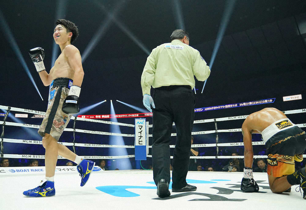 3R、ペタルコリン(右)から左ボディーでダウンを奪う寺地拳四朗(撮影・島崎 忠彦) Photo by スポニチ ペタルコリン、一時優位も…ボディー攻め「予想していなかった」 ギャラリーで見る この記事のフォト 2019年12月24日の画像一覧 もっと見る 2019年12月24日の画像をもっと見る