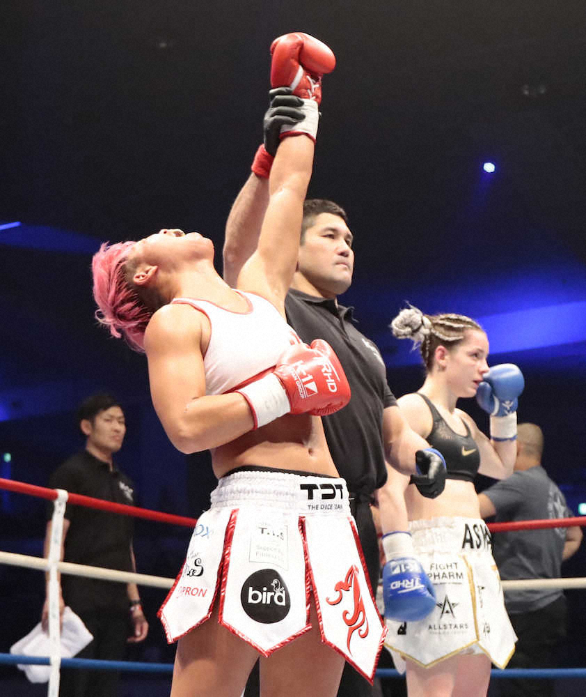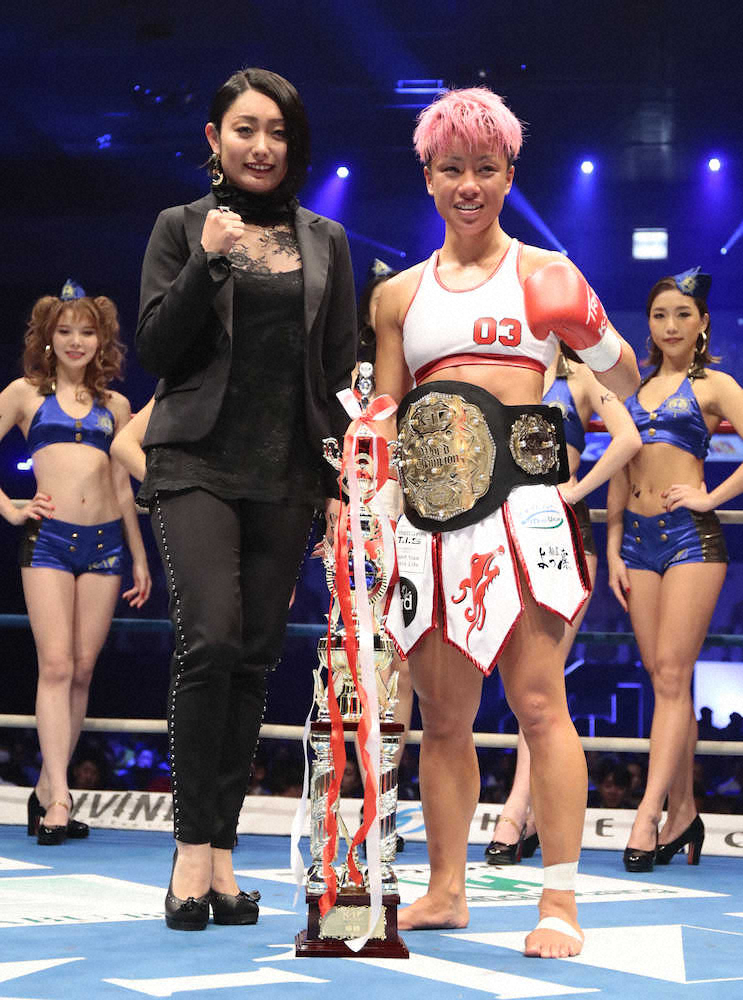 延長判定勝利で初代女子フライ級王座に輝いたKANA(左) (撮影・後藤 大輝) Photo by スポニチ KANA 涙の初代女王!ノットソンとの延長死闘に僅差判定勝ち「K―1、サイコ… ギャラリーで見る この記事のフォト 2019年12月28日の画像一覧 もっと見る 2019年12月28日の画像をもっと見る