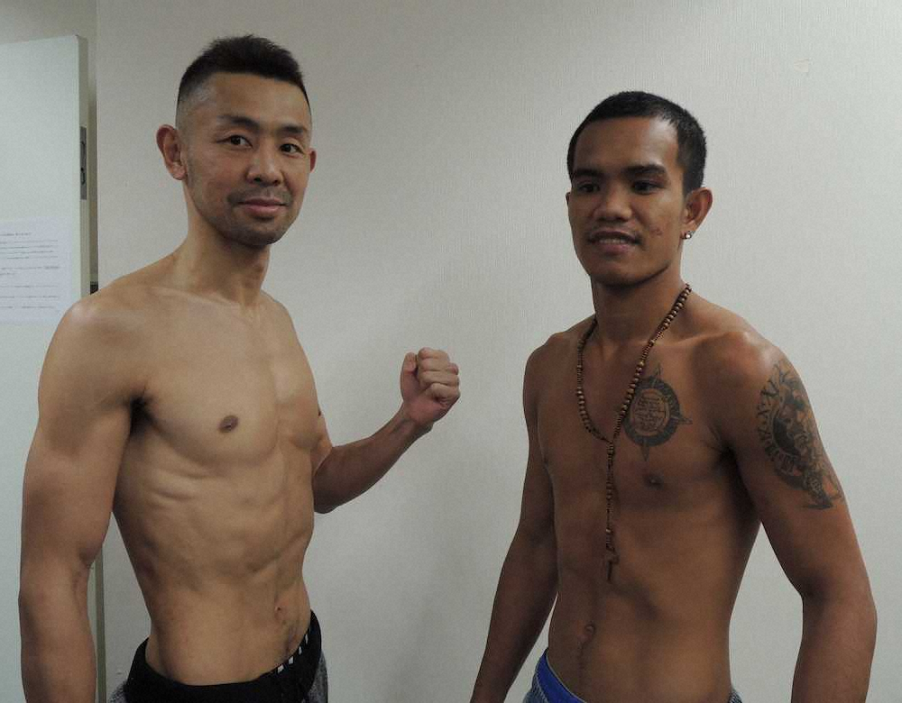 プロボクシングの内山高志presents KNOCK OUT DYNAMAITE 賞金マッチトーナメント決勝(12日、後楽園ホール)の前日計量が11日、東京都文京区の日本ボクシングコミッション事務局で行われ、60キロ級の高畑里望(40=ドリーム)は制限体重を300グラム下回る59.7キロ、マービン・エスクエルド(24=フィリピン)は400グラムアンダーの59.6キロでともに1回目でクリアした。