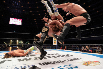 新日本プロレスのIWGPヘビー級、同インターコンチネンタルのダブル選手権が12日に大阪城ホールであり、EVILが王者・内藤哲也を破り、2冠を手にした。
