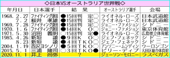日本VSオーストラリア世界戦の過去成績 Photo by スポニチ 尚弥、ベガス初陣“パッキャオの道”へ! 1年ぶりのリングでモンスター伝説「… ギャラリーで見る この記事のフォト 2020年11月01日の画像一覧 もっと見る 2020年11月01日の画像をもっと見る