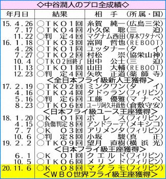 リモートで一夜明け会見を行った中谷は念願のベルトを手に笑顔 中谷潤人 笑顔の一夜明け会見「ベルトは思ったより重かった」 2020年11月07日の画像一覧 もっと見る 2020年11月07日の画像をもっと見る