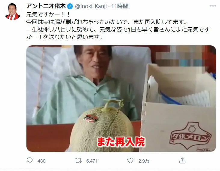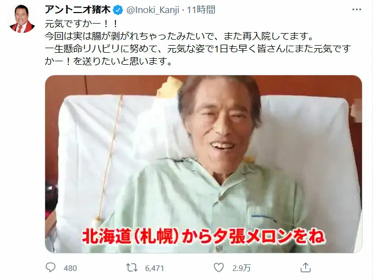 YouTubeチャンネルでメッセージを伝えるアントニオ猪木(アントニオ猪木「最後の闘魂」から) 猪木氏 腸捻転を発症 5月に手術「元気になって“元気ですか!”を送りたい」 ギャラリーで見る この記事のフォト 2021年06月13日の画像一覧 もっと見る 2021年06月13日の画像をもっと見る
