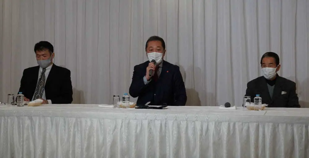 プロボクシング真正ジムの山下正人会長(59)、緑ジムの松尾敏郎会長(73)、BMBジムの寺地永会長(57)が15日、大阪市内のホテルでそろって会見し、WBC世界ライトフライ級王者の矢吹正道(29=緑)と前王者の寺地拳四朗(29)が来春に再戦することで合意したと発表した。具体的な時期や会場は未定。