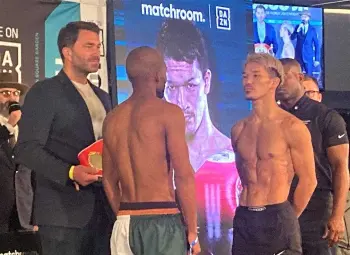 <IBF世界スーパーフェザー級王座決定戦>前日計量をパスし、インタビューに応じる尾川堅一(撮影:杉浦 大介通信員) Photo by スポニチ 尾川堅一、フジレとの王座決定戦へ泰然自若「結果はもう決まっている。す… 2021年11月27日の画像一覧 もっと見る 2021年11月27日の画像をもっと見る