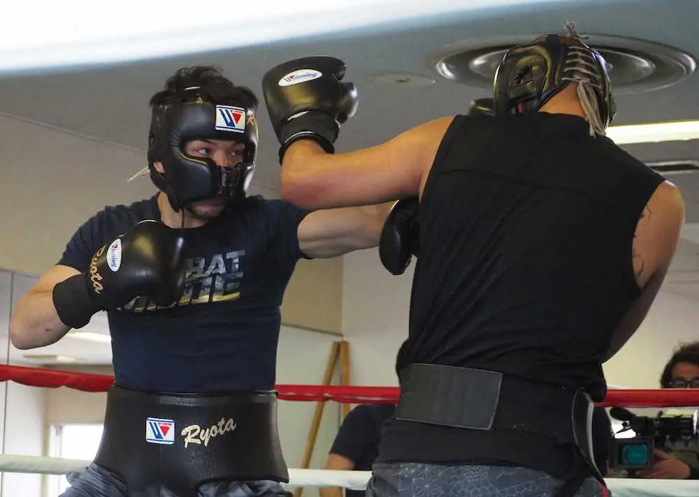 シャドーボクシングの後、元メキシコ王者のアドリアン・ルナ(31)を相手に2ラウンドのスパーリングを披露。しっかり手を出しながらプレスをかけ、接近した状態でワンツー、左右のボディーなどを叩き込んだ。その後は2種類のサンドバッグを計8ラウンドも打ち込み。「この時期は疲れもあるし、まあまじゃないですか。今までやったスパーの中で今日が良いとは言えないけど、想定でみないような内容ではなかった」と及第点。ゴロフキン攻略の鍵について「1ラウンド目から勝負だと思っている。入りが一番大事」と序盤から仕掛けることを“予告”した。金曜日にはスパーリングを打ち上げる予定で、「パートナーには長く居てもらって本当に助かりました」と感謝していた。