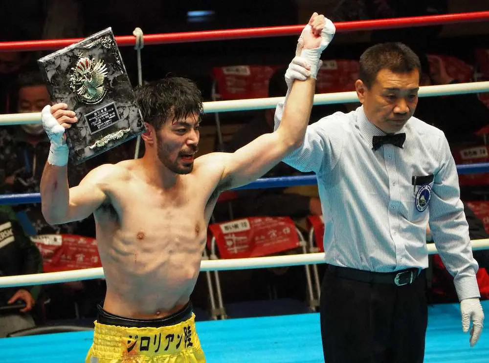 プロボクシング興行「OVERHEAT BOXERS NIGHT.99」は28日、東京・後楽園ホールで行われ、メーンの62キロ契約8回戦では、日本ライト級5位のジロリアン陸(33=フラッシュ赤羽)が14年全日本スーパーフェザー級新人王の粕谷雄一郎(25=角海老宝)を5回1分25秒TKOで下して6連勝、戦績を14勝(13KO)3敗とした。