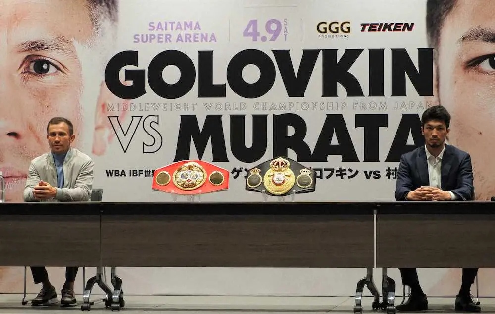 プロボクシングWBA・IBF世界ミドル級王座統一戦(9日、さいたまスーパーアリーナ)の記者会見が7日、東京都内で行われ、WBAスーパー王者・村田諒太(36=帝拳)と、元3団体統一王者で現IBF王者のゲンナジー・ゴロフキン(39=カザフスタン)が顔を合わせた。