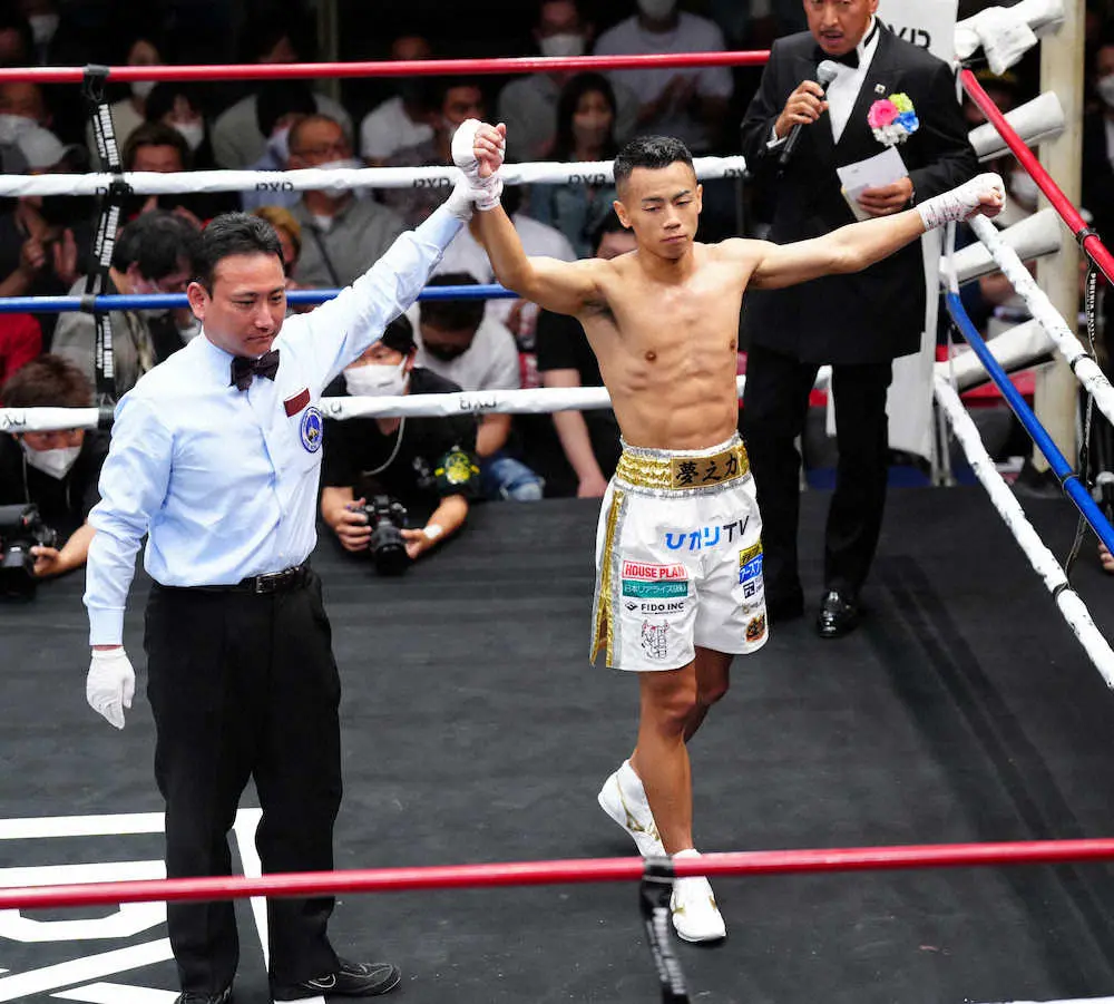 <スーパーバンタム級10回戦 武居由樹VS河村真吾>2R、河村(左)からTKO勝ちした武居は喜ぶ(撮影・島崎 忠彦) Photo by スポニチ 元K―1王者・武居由樹、4戦連続KO勝利!日本ランカーを一発で沈める ギャラリーで見る この記事のフォト 2022年04月22日の画像一覧 もっと見る 2022年04月22日の画像をもっと見る