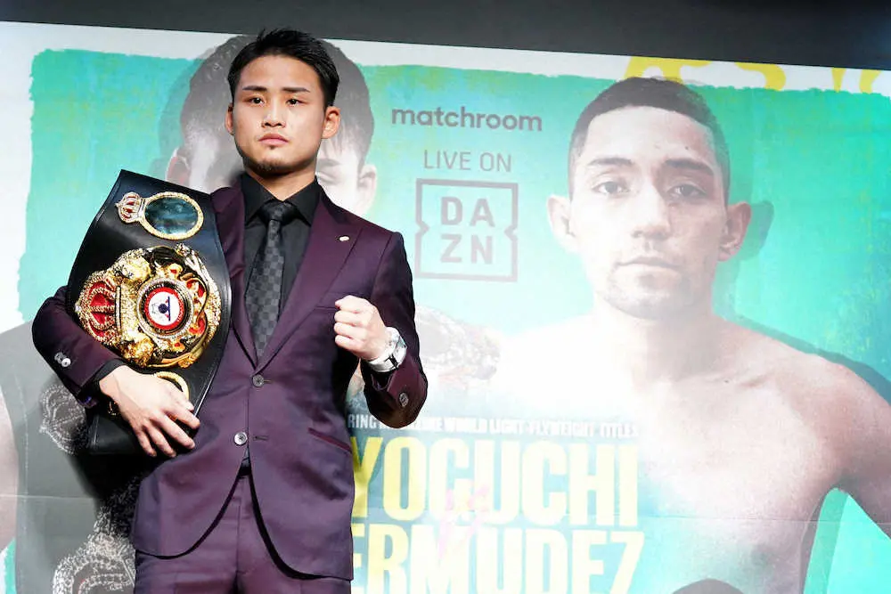 敵地メキシコでの開催は不利になるが、「最近のボクシング界はビッグマッチや海外防衛、統一戦が行われていて、そういう試合をしていかないと注目されないと実感している。パッキャオも敵地でジャイアント・キリングをしていた。メキシコでチャンスをもらえたのは逆に光栄でチャンスと思う」と説明。「これをクリアすればいろんな景色が見えてくると思う」とし、WBC同級王者の寺地拳四朗(BMB)を含めた統一戦にも意欲を示した。1メートル70と自身より8センチ長身のベルムデスについては「メキシコ人の独特なリズムがある。ロングでいきなり振ってきたり、リーチが長い選手なので長い距離は警戒したい」と分析。展開については「自分のボクシングをすれば中盤以降チャンスが来ると思っているし、終盤までに倒せたら合格。海外の試合なので明確に勝ちたいが、アウェーだから絶対に倒さないといけない、というのはない」と話し、「今まで一番強い相手という認識はない。舞台は一番高いステージとは思うが」と付け加えた。