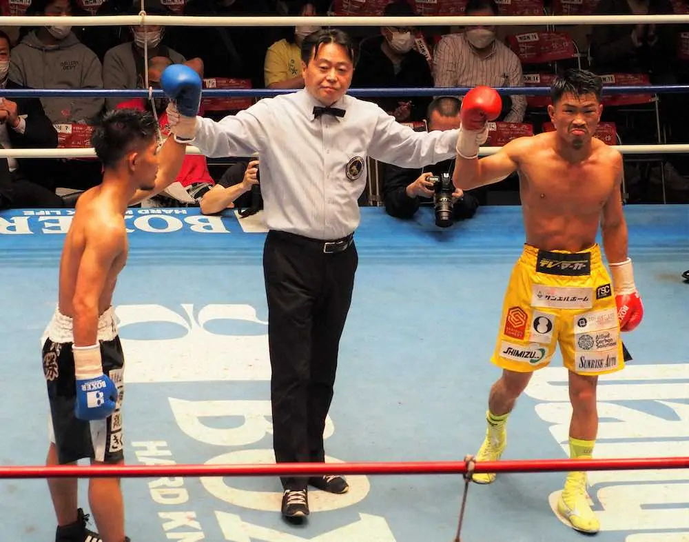 3年8カ月ぶりに国内で試合に臨んだ元WBO世界フライ級王者・木村は苦しい引き分けだった。5、6回と左ボディーで堀川をダウン寸前まで追い込みながら「脚がしんどかった」と失速。採点はジャッジ2人がドロー、1人が相手を支持する0―1だった。
