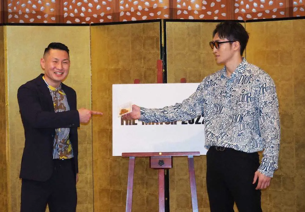山田の印象について問われると、「どんな顔なのか知らなかった。調べてみたら不動産の営業マンのみたいだった。パンチもできてアグレッシブな選手だと思います。でも、フォロワー600人はチャンピオンとしてどうなの」とバッサリ。さらに「弱点も調べてきたので、克服してもらおうと思います」と、山田が苦手な納豆を取り出し、その場で食べるように促し、それを拒否されると「僕に負けたら、この納豆を食べてもらいます」と無茶振り。山田は「バチバチ煽られるかなと思ってましたけど、予想通りでした」と苦笑いするしかなかった。