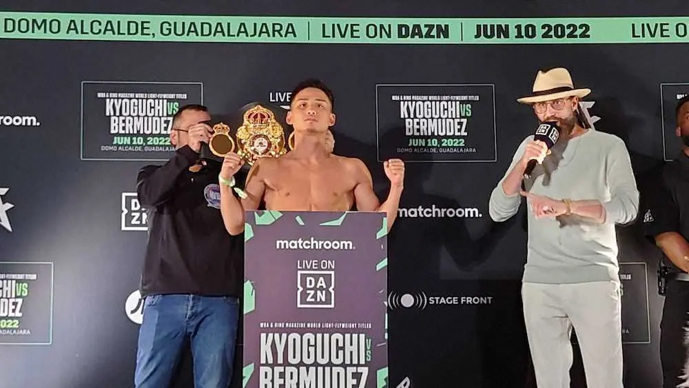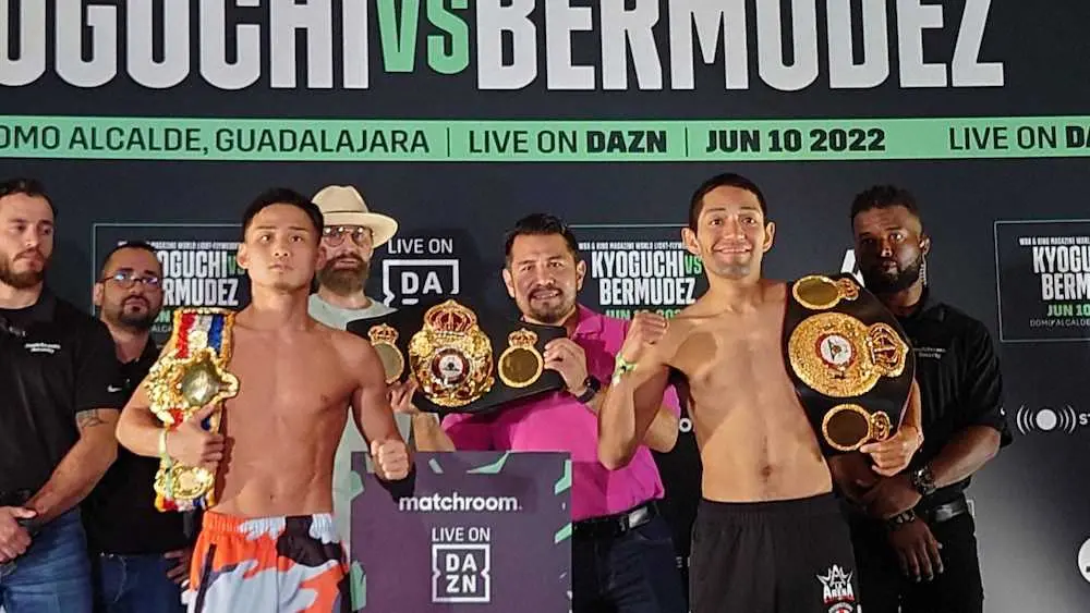 計量をクリアした京口はベルムデスとフェースオフ(ワタナベジム提供) Photo by 提供写真 計量クリアの京口、卵ぞうすいでリカバリー 王座統一&敵地防衛で「認め… ギャラリーで見る この記事のフォト 2022年06月10日の画像一覧 もっと見る 2022年06月10日の画像をもっと見る