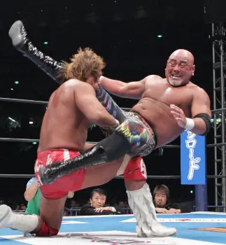 ☆95年10月9日 UWFインターとの対抗戦(東京ドーム)。大将戦で高田延彦に足4の字固めで勝利。