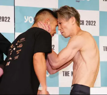 格闘技イベントの「THE MATCH 2022」の前日計量が18日に東京都内で行われた。メインイベントで行われる58キロ契約のRISE世界フェザー級王者・那須川天心(TARGET/Cygames)とK―1史上初の3階級王者で現スーパー・フェザー級王者・武尊(SAGAMI―ONO KREST)の“世紀の一戦”は両者ともに計量パスした。
