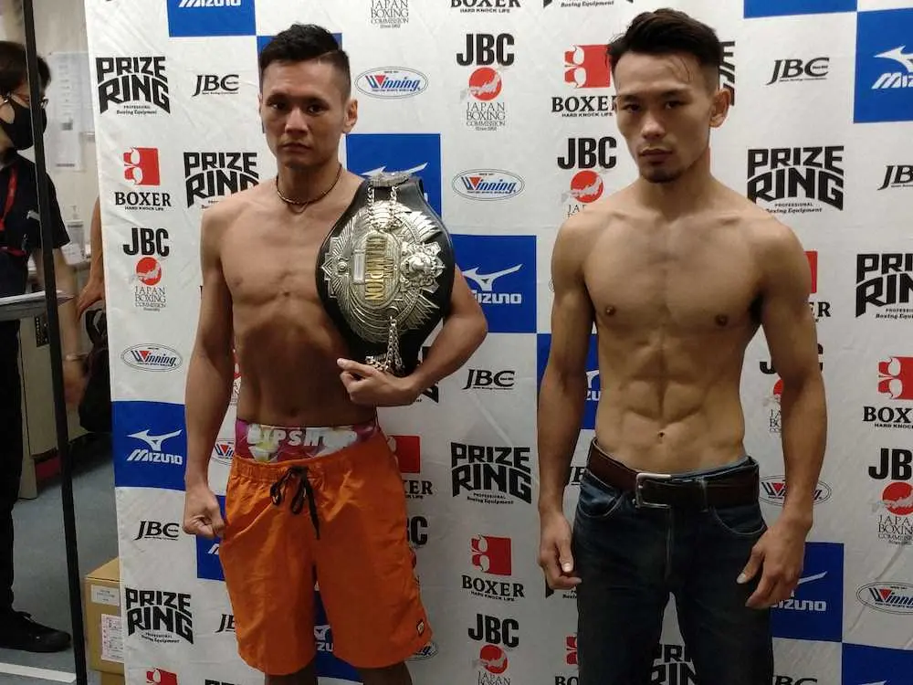 日本バンタム級タイトル戦の計量で早くも火花 王者のベルトに堤「よだれが出る」沢田「渡すつもりない」