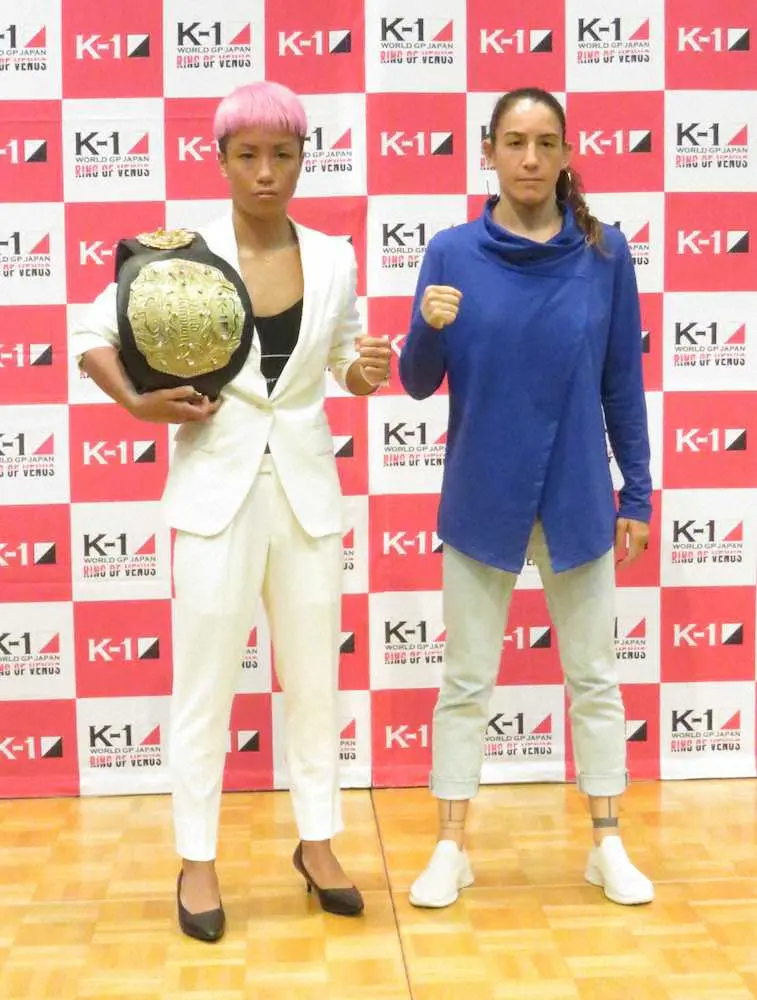 K―1初の女子大会「K―1 WORLD GP 2022 JAPAN~RING OF VENUS~」(25日、東京・代々木第2体育館、スポニチ後援)の前日計量が24日、都内で行われ、メインを務めるK―1女子フライ級王者・KANA(29=三軒茶屋シルバーウルフ)はリミットの52キロでクリアした。フランス人挑戦者との初防衛戦に向け「ばっちり調整ができた。あすはこのベルトとも勝負だし、世間とも勝負。しっかり勝ちに行く」と誓った。