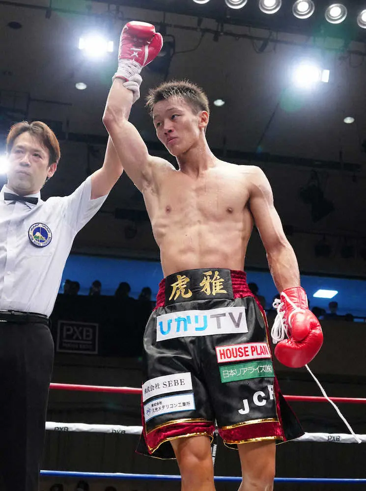 史上初の高校8冠を含むアマチュア10冠に輝いた今永虎雅=たいが=(22=大橋)がB級の6回戦でプロデビューし、浜崎隆広(36=仲里)に2回2分49秒KO勝ちした。