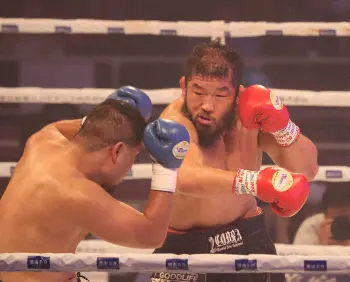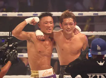 <イ・ソンミン・但馬ブランドンミツロ>チャンピオンベルトを肩に掲げる但馬ブランドンミツロ(左2人目)(撮影・後藤 正志) Photo by スポニチ 但馬ミツロが1回TKO勝ちで日本ヘビー級王座獲得 日本最速記録プロ2戦目で ギャラリーで見る この記事のフォト 2022年08月14日の画像一覧 もっと見る 2022年08月14日の画像をもっと見る