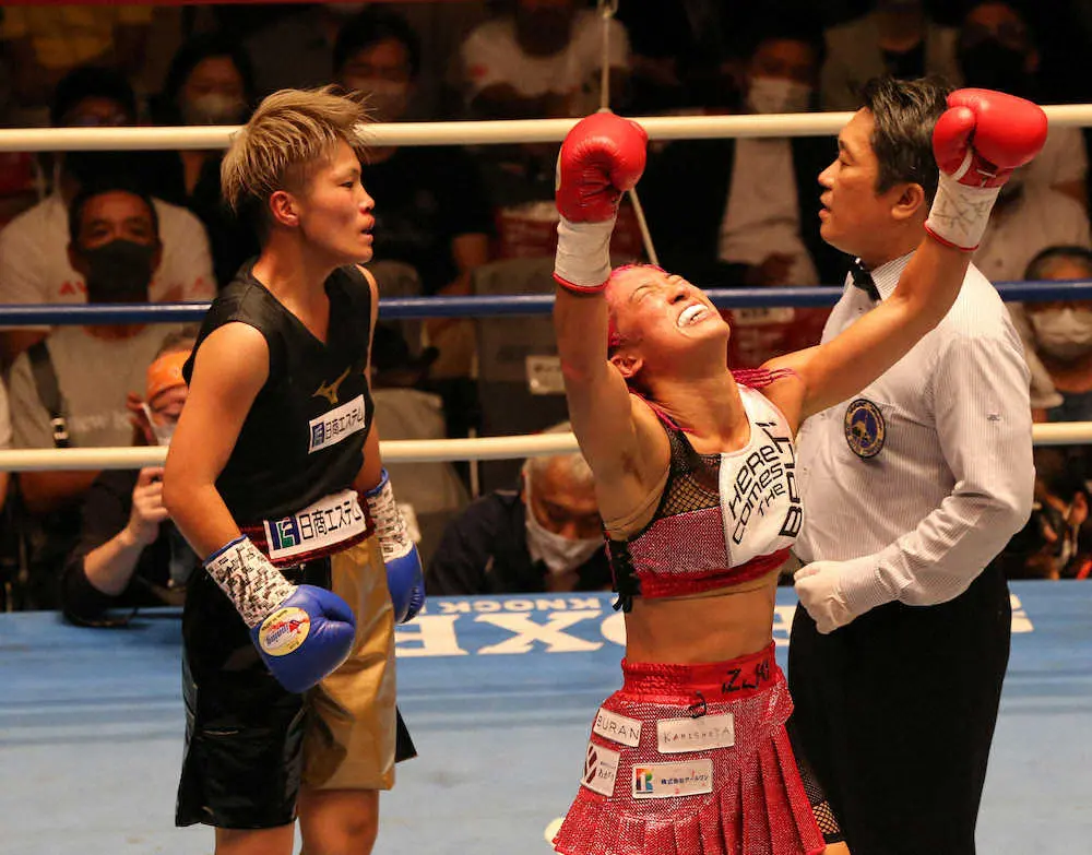 日本女子フライ級1位の晝田瑞希=ひるた・みずき=(26=三迫)が同級3位の柳井妃奈実(24=真正)に3―0で判定勝ちし、新王者となった。アマ時代に東京五輪女子フェザー級金メダリストの入江聖奈(22=日体大)のライバルだった晝田はプロデビューから3連勝で初のタイトル獲得となった。