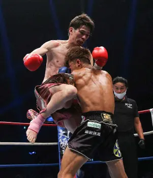 <K―1 WORLD GP 2022 JAPAN~よこはまつり~>K―1第5代スーパー・フェザー級王座決定トーナメント決勝戦、3回朝久(右)を攻めるレオナ(撮影・藤山 由理) Photo by スポニチ トーナメントはレオナが優勝 武尊の返上したベルトを獲得して「K―1最高!」 ギャラリーで見る この記事のフォト 2022年09月11日の画像一覧 もっと見る 2022年09月11日の画像をもっと見る
