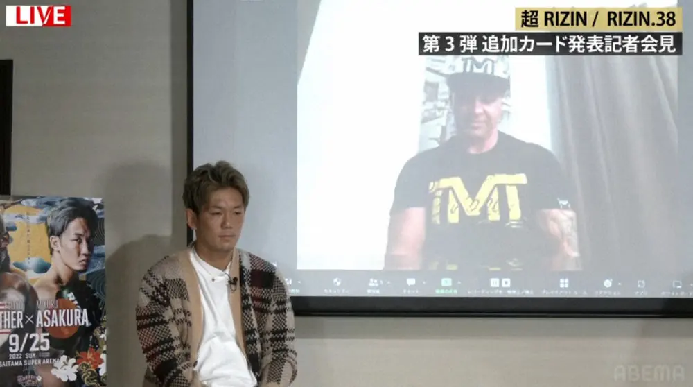 対戦が決まった皇治とジジ(C)AbemaTV, Inc. Photo by 提供写真 皇治が9・25「超RIZIN」緊急参戦!朝倉未来を突き飛ばしたメイウェザーの… ギャラリーで見る この記事のフォト 2022年09月14日の画像一覧 もっと見る 2022年09月14日の画像をもっと見る