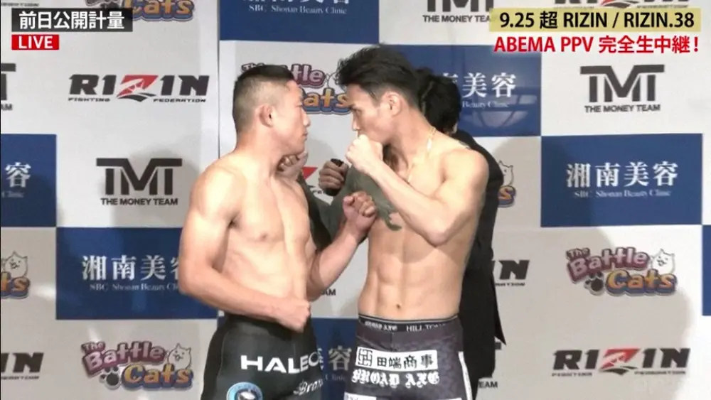 前日計量後を行った堀口恭司(左)と金太郎 (撮影・西川祐介) Photo by スポニチ “日本凱旋”堀口恭司 計量クリア「盛り上がる試合する」 相手の金太郎も… ギャラリーで見る この記事のフォト 2022年09月24日の画像一覧 もっと見る 2022年09月24日の画像をもっと見る