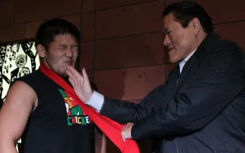 ☆ボクシング・亀田和毅 10年「Dynamite!!」に登場し闘魂ビンタを受けた。翌年2月の王座決定戦(メキシコ)に勝ちNABF北米バンタム級王座を獲得。5つ目のタイトルを手にした。