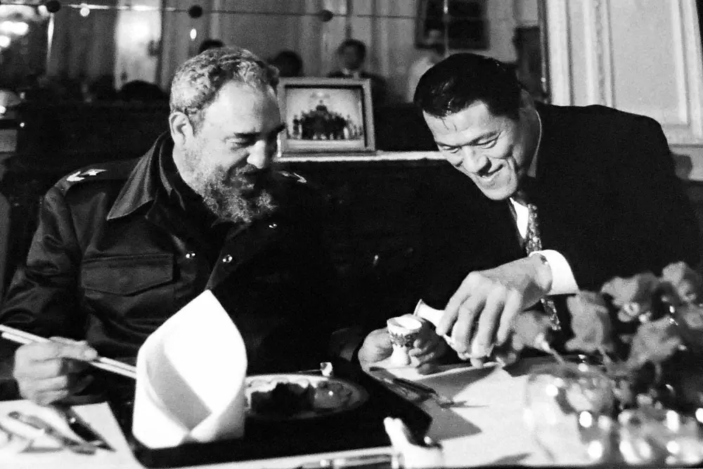 プロレスラー出身で初めて国会議員となった猪木さん。政治家としての大きな業績は独自外交だった。1990年3月にはキューバの日本大使館を訪れ、フィデル・カストロ国家評議会議長(当時)と会食。猪木さんが、まるで古くからの友人を相手にするようにカストロ氏にお酌する姿は話題になった。