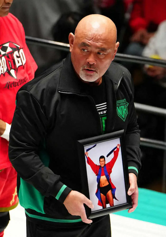 10月1日に心不全で死去したアントニオ猪木さん(享年79)をしのび、弟子の武藤敬司(59)らが所属するプロレスリング・ノアが7日、東京・後楽園ホールでの興行で追悼セレモニーを行った。第1試合開始前にノアの所属選手がリングサイドに集結。遺影を抱いた武藤、船木誠勝(53)、藤田和之(51)がリングに上がり、10カウントゴングが鳴らされた。