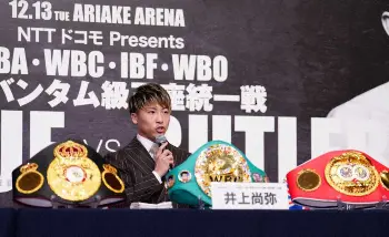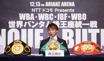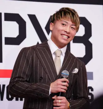 笑顔で取材を受ける井上尚弥(撮影・島崎忠彦)