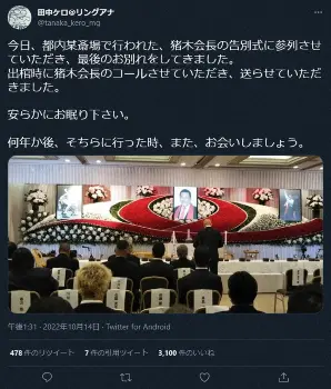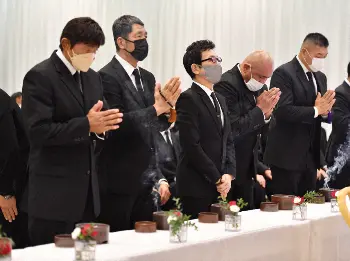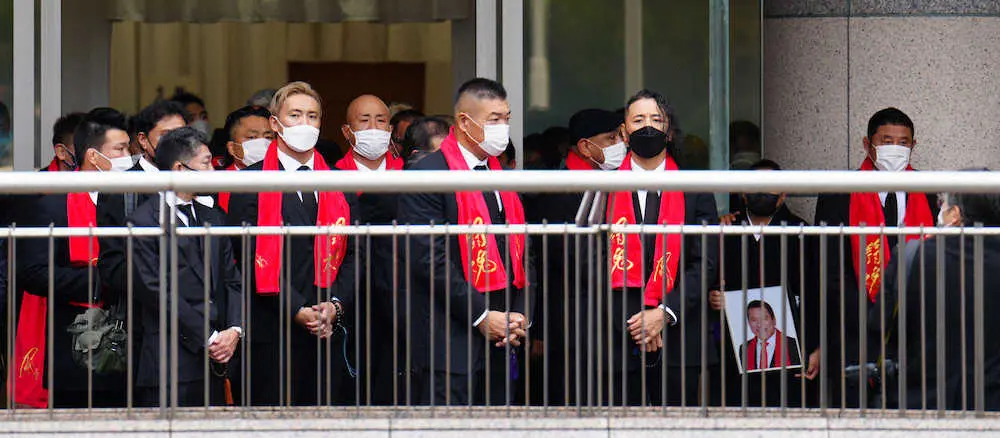 赤いマフラーを巻き、アントニオ猪木さんの棺に手を合わせるレスラーら(撮影・島崎忠彦) Photo by スポニチ 藤波辰爾、武藤敬司ら赤いマフラーで“燃える闘魂”見送る 猪木さん葬儀 ギャラリーで見る この記事のフォト 2022年10月14日の画像一覧 もっと見る 2022年10月14日の画像をもっと見る