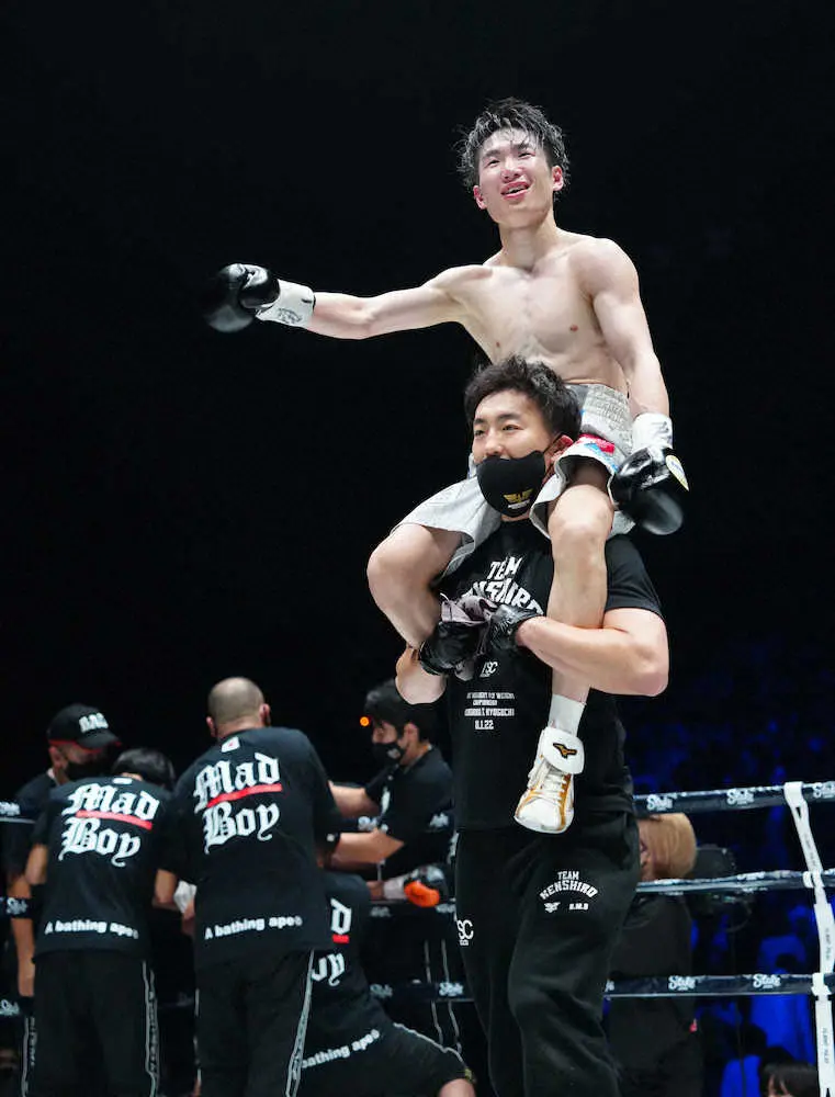 <WBA・WBC世界ライト・フライ級王座統一戦 寺地拳四朗・京口紘人>7回、京口にKO勝ちし笑顔の寺地(撮影・島崎 忠彦) Photo by スポニチ 寺地拳四朗 京口下して2団体統一王者!ネット感動「年間ベストバウト!」… ギャラリーで見る この記事のフォト 2022年11月01日の画像一覧 もっと見る 2022年11月01日の画像をもっと見る