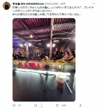 格闘家・平本蓮(24=Roufusport)が10日に自身のツイッターを更新。ユーチューバー・ヒカル(31)による格闘技イベントに参加したものの「ブレイキングダウンっぽすぎて早く帰りたい…」と投稿した。