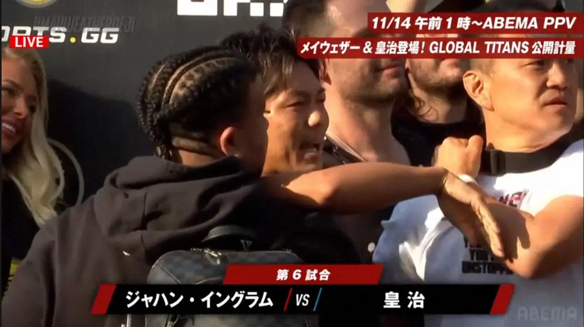 皇治 メイウェザーの弟子・イングラムと前日計量から一触即発!フェースオフでイングラムに突き飛ばされる