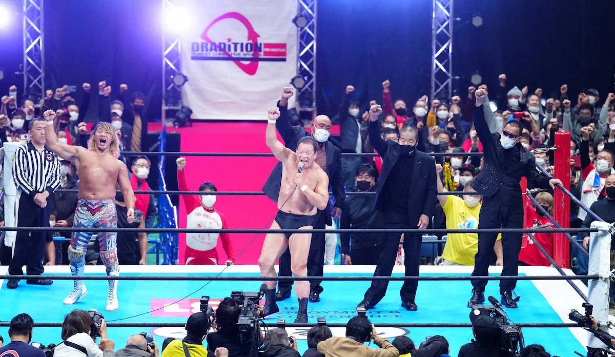 試合後には猪木さんの追悼セレモニーも行われ、藤波は「本来、猪木さんもこのリングに立ってくれる約束でした。それはかなわぬことになりましたが、我々レスラーはこれからも猪木さんの遺志を継いでまい進していきます」とあいさつ。「1、2、3、ダァー!」で締めた。