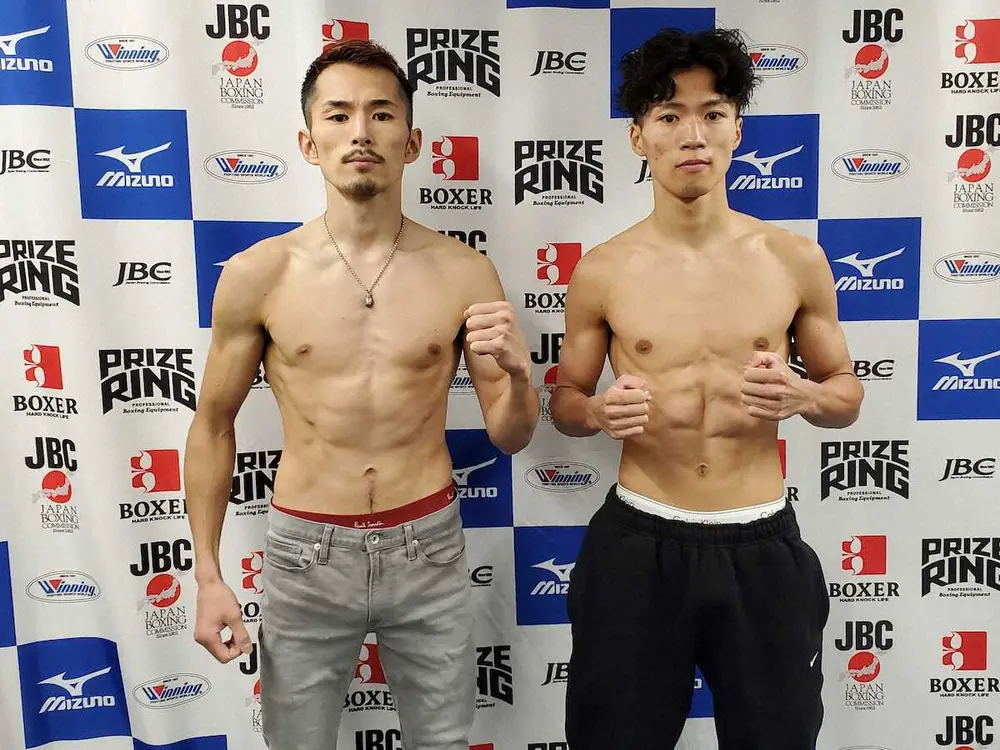 プロボクシングのWBOアジア・パシフィック&日本フェザー級タイトルマッチ12回戦(3日、東京・後楽園ホール)の前日計量が2日、東京都文京区の日本ボクシングコミッション(JBC)で行われ、王者・阿部麗也(29=KG大和)、挑戦者の日本同級2位・前田稔輝(26=グリーンツダ)はともにリミットを100グラム下回る57・0キロで一発パスした。戦績は初防衛戦となる阿部が戦23勝(10kO)3敗1分け、タイトル初挑戦の前田は10戦全勝(5KO)。